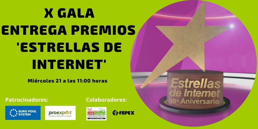 On their 10th Anniversary, the ‘Estrellas de Internet’ are sponsored by Euro Pool System and Proexport, with the collaboration of Fruit Attraction and Fepex.