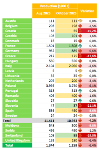 Sin embargo, a medida que transcurrían los meses se observaba una tendencia más a la baja que las primeras previsiones. Según señala Philippe Binard, secretario general de Freshfel, “no hablamos de una equivocación sino más bien de un ajuste porque los datos evolucionan en función del tamaño de la fruta, de las condiciones climáticas, del agua o en función de otros factores que impactan en la calidad. Siempre se hace necesario mirar con especial ojo a los dos gigantes, Italia y Polonia, porque sus producciones tienen especial importancia en la cifra global.”