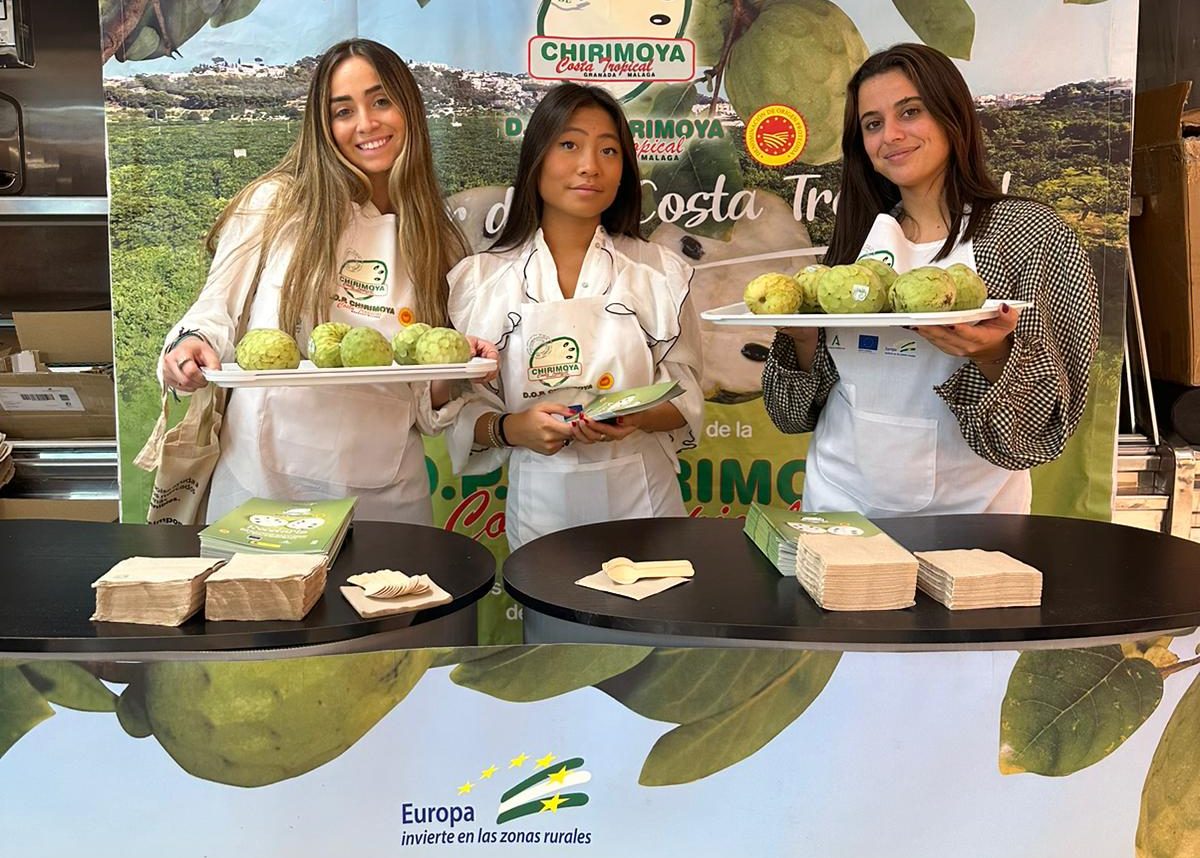 La primera actividad que se desarrolló en Madrid fue en tres mercados de abastos: Chamartín, Antón Martín y Chamberí durante los días 5, 6, 7 de octubre, respectivamente. De la misma manera, la promoción culminó el 10 de octubre de 2023, donde el CRDOP tuvo a su disposición un aula demostrativa en la Escuela de Hostelería y Turismo de Madrid para alumnos, docentes e invitados profesionales del sector hostelero donde se desarrolló una masterclass en la que se elaboraron dos recetas (Ajoblanco con Chirimoya DOP y Cous-cous Negro Primaveral) que se unieron para elaborar una Mazamorra de Chirimoya DOP con Cous-cous Negro Primaveral y una previa presentación por parte de un asesor del Consejo Regulador. Con anterioridad a esta presentación, los alumnos realizaron en las cocinas profesionales de la escuela 12 recetas creativas, teniendo la chirimoya DOP de la Costa Tropical como protagonista. En la degustación asistieron dos representantes de la Asociación MUM de Madrid.