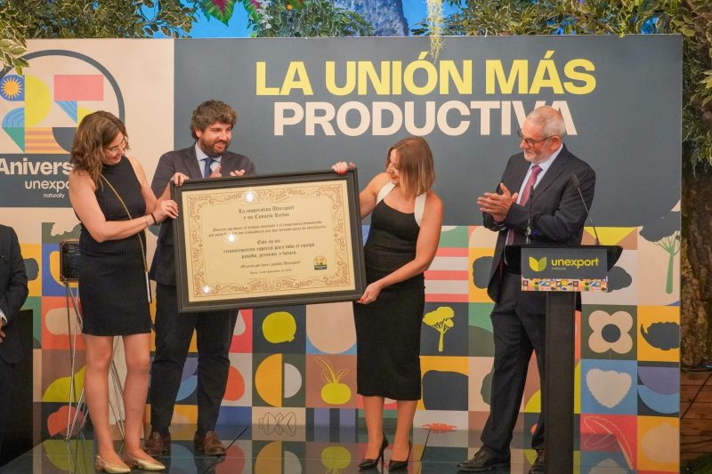 Fernando López Miras elogió el esfuerzo de muchas familias que contribuyen a alimentar a medio mundo y destacó la necesidad de flexibilizar la legislación europea y reducir la burocracia para fortalecer el sector agrícola. “El modelo de éxito de Unexport representa el potencial del campo en la Región de Murcia, a pesar de las dificultades y la escasez de recursos hídricos. La región no renunciará a su modelo productivo de éxito, y continuaremos luchando por el agua que nos corresponde.”