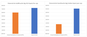 Dos problemas principales en los sistemas acuáticos son la acidificación y la eutrofización. La acidificación amenaza la supervivencia de la vida marina, altera la cadena alimentaria y socava los servicios vitales proporcionados por el mar y nuestra propia seguridad alimentaria (UN, 2023). La acidificación del agua ocurre fundamentalmente a causa de la transformación de los contaminantes atmosféricos en ácidos. Esto lleva a la disminución del valor del pH del agua de lluvia y la niebla de 5.6 a 4, o incluso menos. El dióxido de azufre y el dióxido de nitrógeno, así como sus respectivos ácidos (H2SO4 y HNO3) contribuyen de manera relevante a la acidificación del medio. El potencial de acidificación se mide en cantidad de dióxido de azufre equivalente (SO2-Eq.) y se describe como la habilidad de ciertas substancias para crear y liberar iones H+ (EC, 2014).