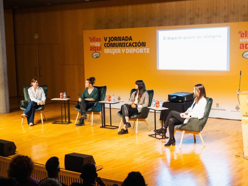 Finalmente, «Visibilidad, deporte minoritario y mujer deportista» ha sido el título de la última rueda de comunicaciones con Cristina Gallo, periodista, directora, escritora y presentadora del programa de radio Ganamos con ellas; Noelia Pérez y Carmina Zaragoza, cofundadoras y redactoras en La Tarjeta Morada; y Danae Boronat, periodista, presentadora de televisión y autora de No las llames chicas, llámalas futbolistas. Estas profesionales de la comunicación han hablado de la creación de espacios específicos para informar de las carreras y logros deportivos de las mujeres en el deporte, pero también de la necesidad de ir ganando espacio en la parrilla habitual, la importancia de utilizar nuevos canales y formatos de comunicación o el reciclaje en las redacciones de información deportiva hacia un lenguaje inclusivo y con perspectiva de género.