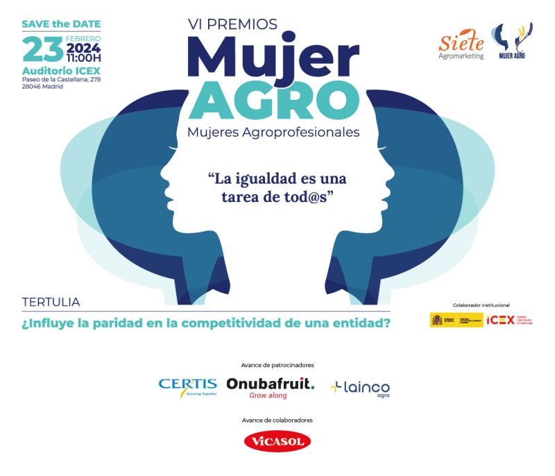 Madrid se convierte un año más en la capital de la igualdad dentro del sector agroalimentario de la mano del Proyecto MujerAGRO, acogiendo la ceremonia de entrega de los VI Premios MujerAGRO el próximo 23 de febrero, en el Auditorio del ICEX España Exportación e Inversiones a partir de las 11 horas.