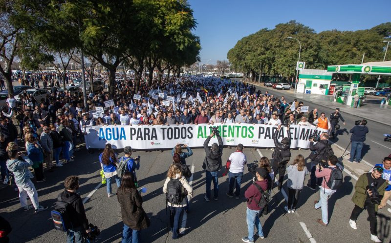 El sector agrícola de Huelva ha respondido con un éxito rotundo a la manifestación convocada durante este jueves 1 de febrero en Sevilla, por los representantes de las organizaciones agrarias Freshuelva, Asociación de Citricultores de la Provincia de Huelva, Cooperativas Agro-Alimentarias Huelva, Asaja-Huelva, UPA-Huelva y la asociación de Comunidades de Regantes de Huelva (Corehu), con el objetivo de reclamar al Gobierno de la Nación y a la Junta de Andalucía soluciones para la “complicada situación que atraviesa por la falta de infraestructuras hídricas y acentuada por la sequía extrema actual”.