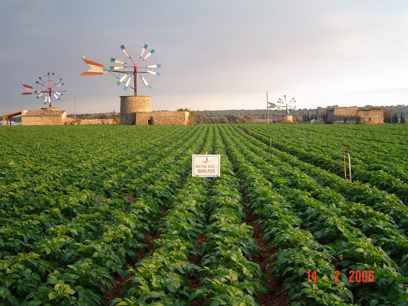 En Mallorca se dan dos cosechas, la de invierno, que se planta entre los meses de agosto y septiembre con recolecciones en enero-febrero y la de primavera, que se siembra en octubre-noviembre y se recoge a partir de finales de marzo, alcanzando su pico entre abril y mayo. Las principales variedades con las que la firma trabaja son Maris Peer y Lady Christl.