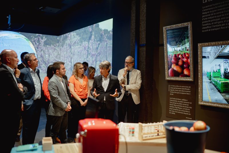 La comitiva formada por el presidente y el resto de autoridades han iniciado el recorrido por el Cosmofruita recibidos por una personaje caracterizado de época que les ha explicado los orígenes de la fruta en el Paleolítico y que, siguiendo la línea cronológica de la historia de la humanidad, les ha llevado hasta el primer cierre del Canal de Urgell debido a la sequía. Seguidamente y a través de pantallas audiovisuales, elementos reales y juegos interactivos, los visitantes se han adentrado en el mundo de la fruta rompiendo ciertos tópicos que arrastra el sector y poniendo en valor un trabajo fundamental en la economía de Ponent como es el de la payesía.