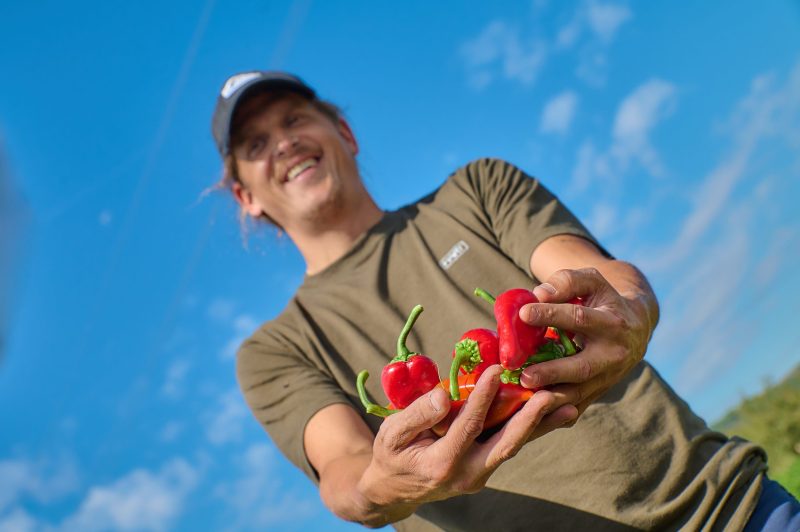 El agricultor mostró a los asistentes las características del pimiento del piquillo de Lodosa, un producto con Denominación de Origen que se caracteriza por su color rojo intenso, su tamaño de unos 10 centímetros, su forma plana triangular con una punta ligeramente curva, su carne fina y su sabor dulce. Se cultiva y elabora exclusivamente en los ocho municipios amparados por el reglamento de la D.O: Andosilla, Azagra, Cárcar, Lerín, Lodosa, Mendavia, San Adrián, y Sartaguda.